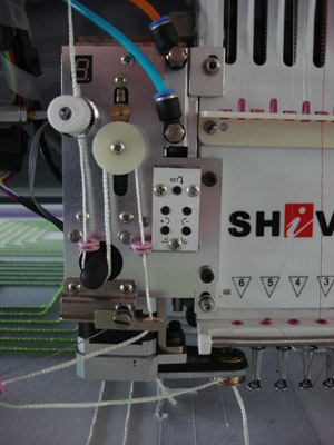 6、自動(dòng)送線控制。并且可根據(jù)繡品需要任意調(diào)節(jié)送線的速度和張力,有效改善繡品質(zhì)量。